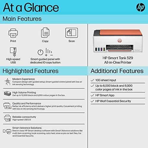 HP Smart Tank 529 AIO Colour Printer (Upto 6000 Black & 6000 Colour Pages Included in The Box)- Print, Scan & Copy for Office/Home